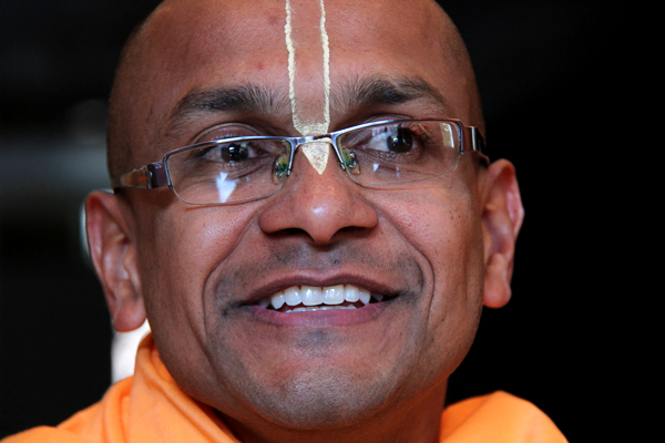 But Gadadhara has not always been a monk with that mindset. Raised in India, he immigrated to this country with his parents when he was eight years old and says he “grew up in an environment charged with materialism.” He worked in a mortgage company for a number of years, but when his parents’ jewelry business took a turn for the worse it prompted him to become introspective and read the Bhagavad Gita, the famous Indian religious and philosophical text. In 1999, Gadadhara’s curiosity let him to India and a spiritual practice. He says he did not plan to become a monk but one month led to two and now he’s been a practicing monk for 12 years.
